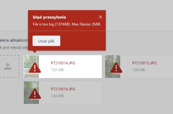UWAGA! Jeżeli zechcemy dodać za duże zdjecia, bo nie korzystaliśmy z poradnika jak przygotować sobie zdjęcia strona uniemożliwi nam przesłanie zdjęć.