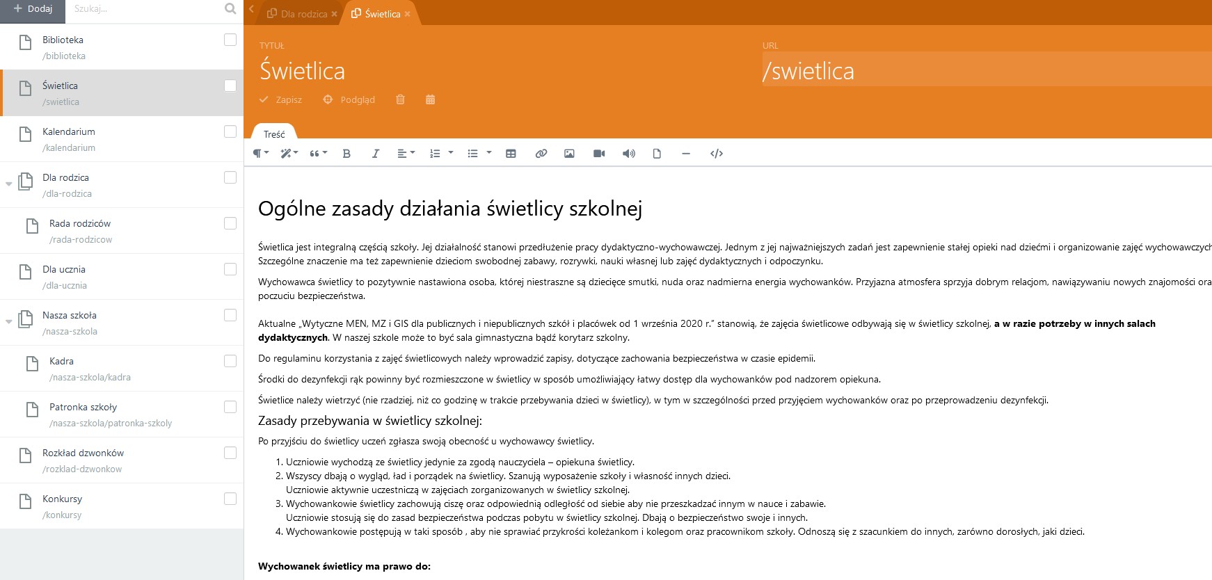 Jest to w zasadzie edytor tekstu wbudowany w stronę. Dlatego nie ma konieczności przeklejania z plików Word (.doc, .docx, .ods itp) treści (wręcz czasami takie wklejanie narobi nam problmów). Najporościej wklejać tam czysty tekst.