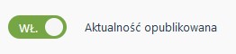 1. Na górze mamy przycisk. Aktualność opublikowana. Służy on do pokazywania bądź ukrywania aktualności na stronie.
