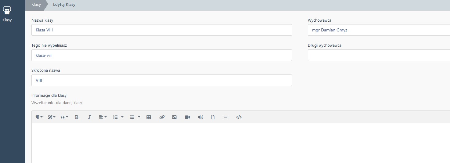W tym miejscu możemy edytować informacje na temat poszczególnych klas.
