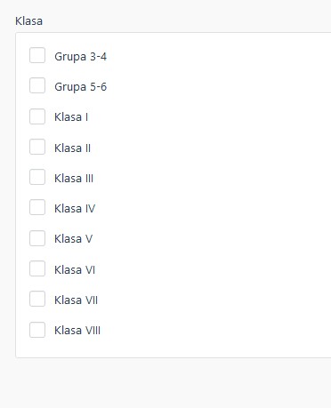 3. Wybieramy ewentualną klasę, jężeli aktualność ma być przypięta do danej klasy. Jeśli nic nie zaznaczymy to aktualność pokaże się na stronie głównej.