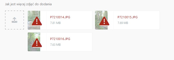 UWAGA! Jeżeli zechcemy dodać za duże zdjecia, bo nie korzystaliśmy z poradnika jak przygotować sobie zdjęcia strona uniemożliwi nam przesłanie zdjęć.